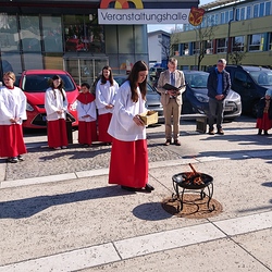 Jesus hat den Tempel gereinigt: in der Zeichenhandlung setzte Jesus sich mit aller Macht dafür ein, dass nichts und niemand sich zwischen uns und seinen Vater stellen darf. Deswegen musste er sterben. Am Kirchplatz wird am Ende der Feier alles dem Feuer übergeben, was uns den Blick auf Gott verstellt.